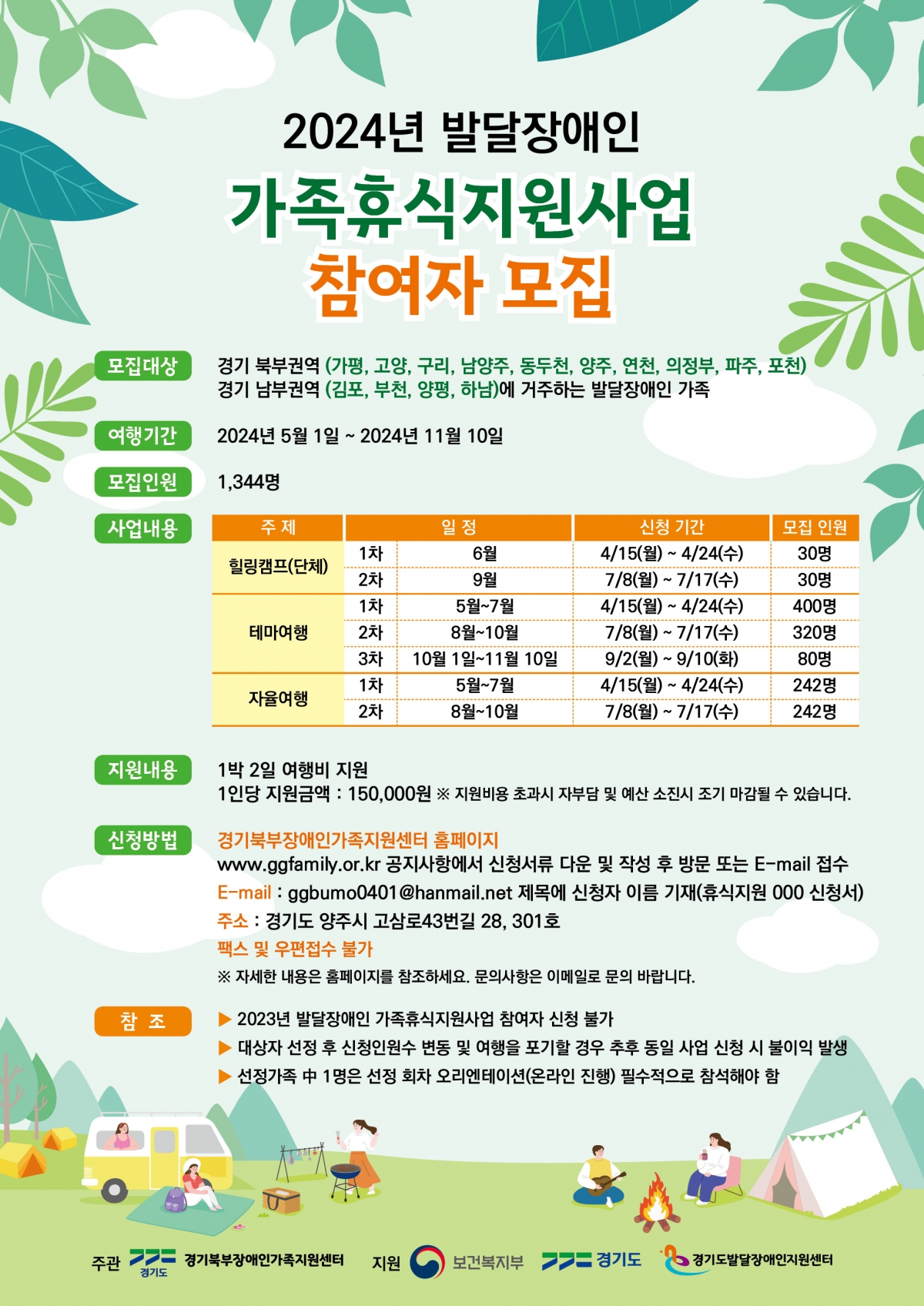 [홍보] 경기북부장애인가족지원센터, 2024년 발달장애인 가족휴식지원사업 <1차> 참여자 모집