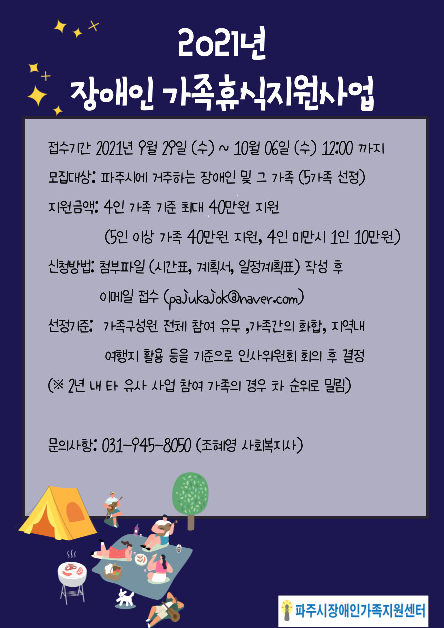 [신청마감] 2021년 파주시장애인가족지원센터 가족휴식지원사업 프로그램 참여자 모집안내