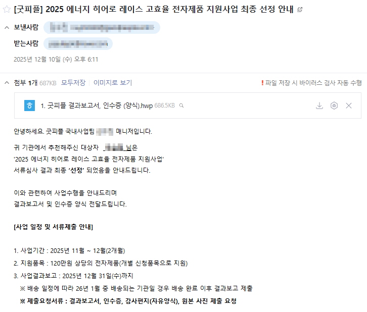 [공고] 굿피플 인터네셔널 '2025 에너지 히어로 레이스 고효율 전자제품 지원사업' 최종 선정