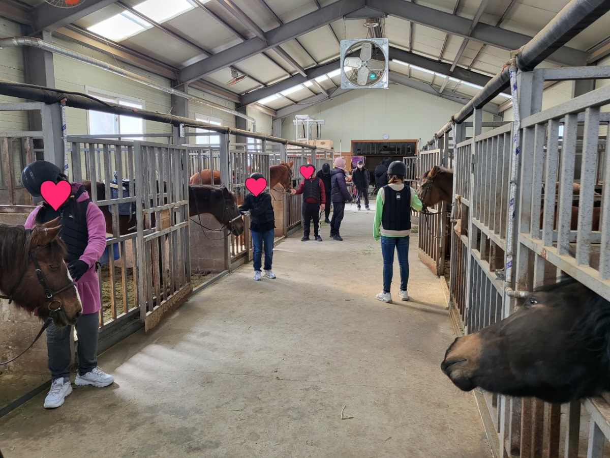 교관의 지시에 따라 초급반, 중급반 친구들이 함께 마방으로 이동하였습니다.