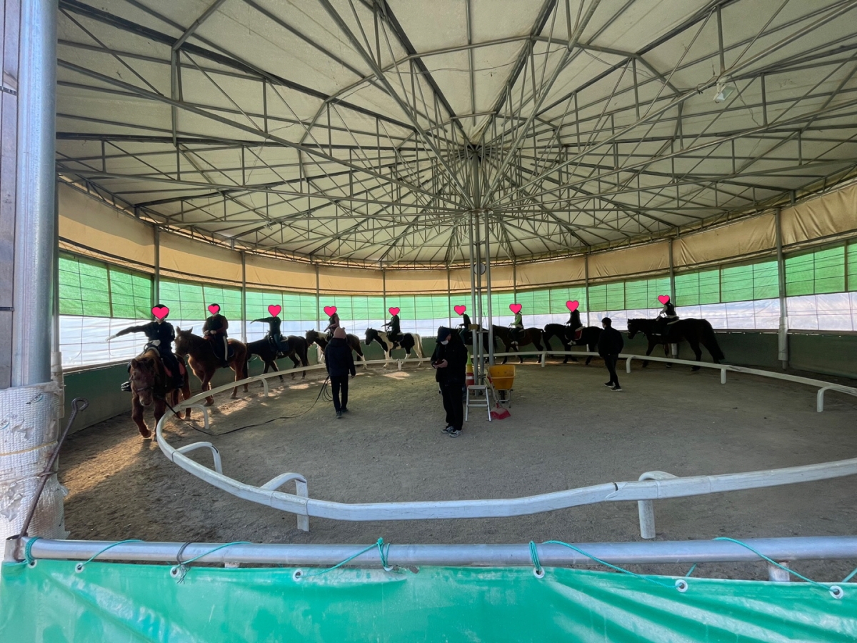 처음에는 말과 익숙해지는 시간을 갖기 위해 말을 타고 원형마장을 돌았습니다.