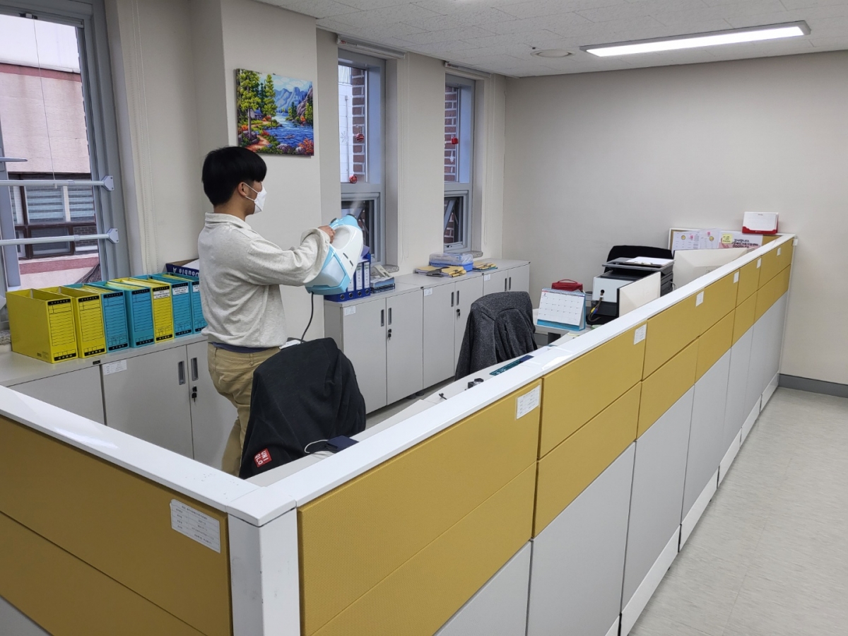 방역소독기를 구입하여 상담실, 프로그램실, 사무공간 등 꼼꼼히 센터 소독을 진행하였습니다.