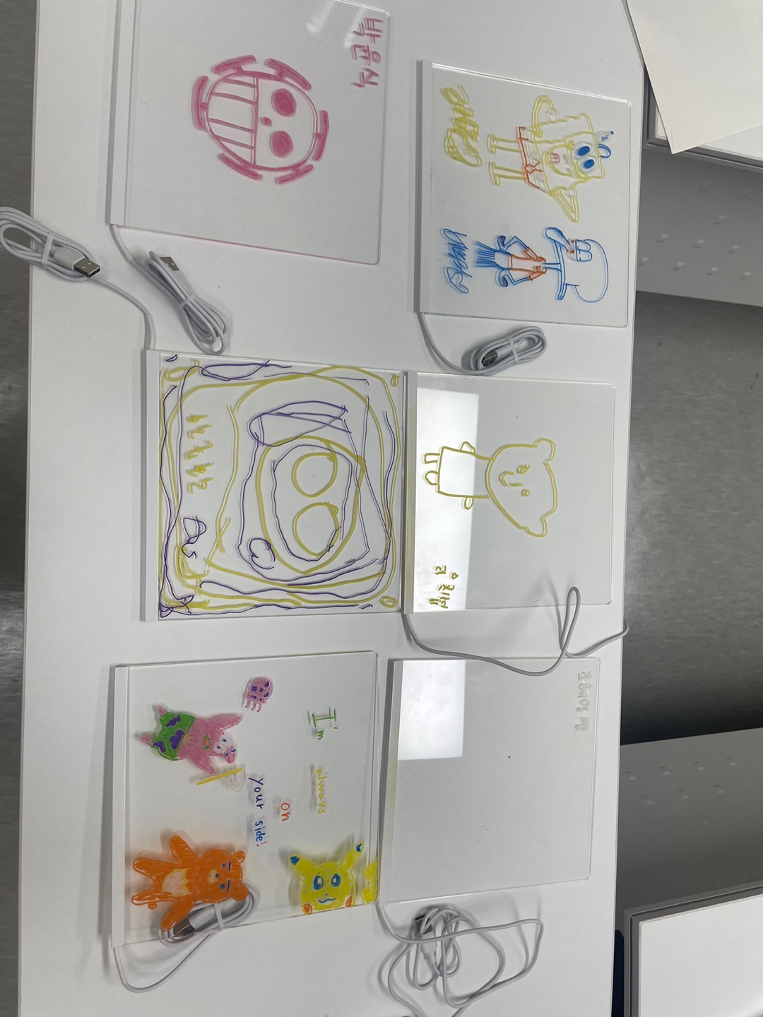이번 활동은 '나만의 무드등 만들기' 로 투명판에 알록달록한 색깔펜을 이용하여