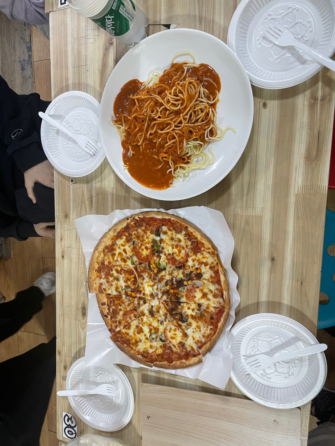 점심시간에는 직접 만든 피자와 파주치즈스쿨에서 제공한 스파게티, 음료를