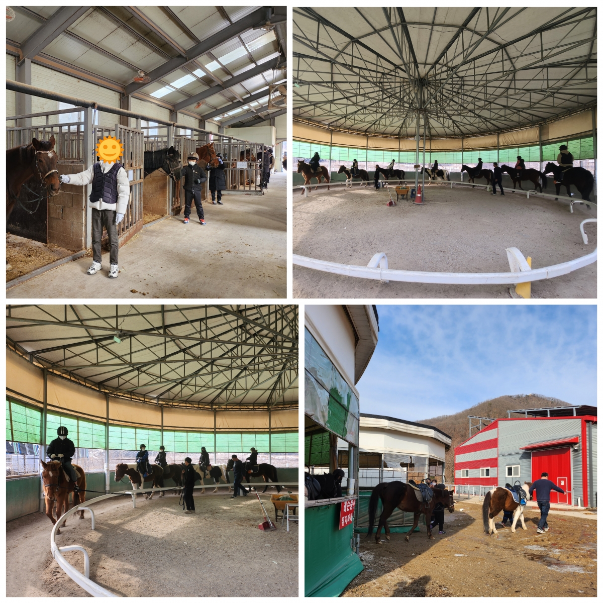 승마 수업은 승마경험에 따라 초급반/ 중급반으로 나누어 수업이 진행되었습니다.