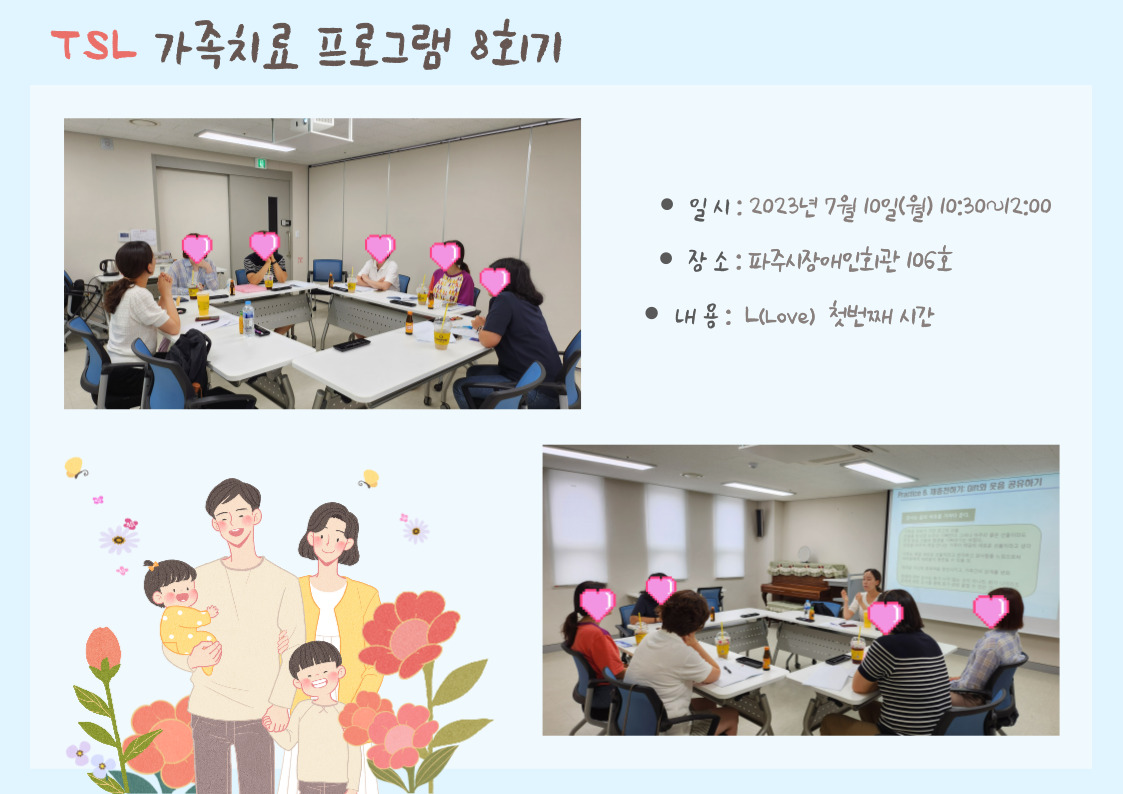 도움이 되는 TSL 가족치료 프로그램을 10회기 동안 진행합니다~!