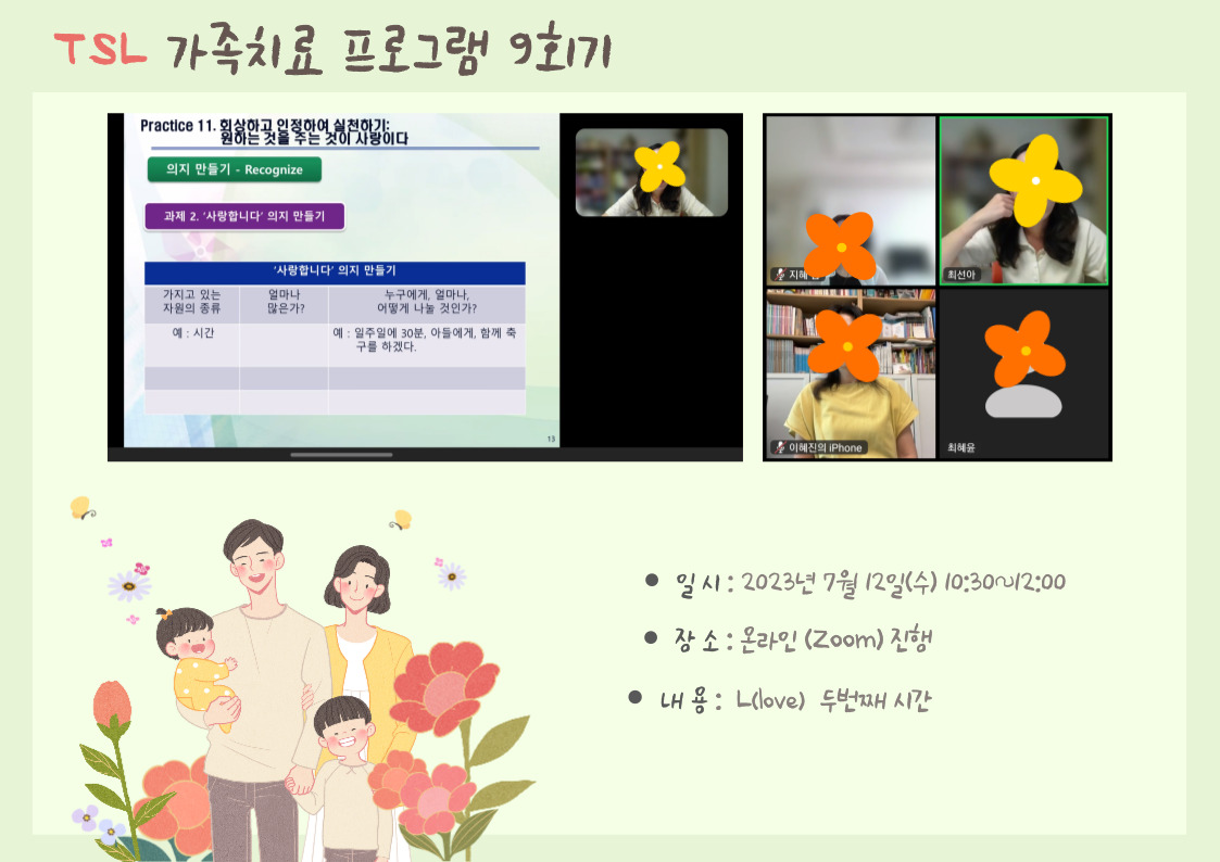 TSL 가족치료 프로그램 9회기를 진행했습니다.