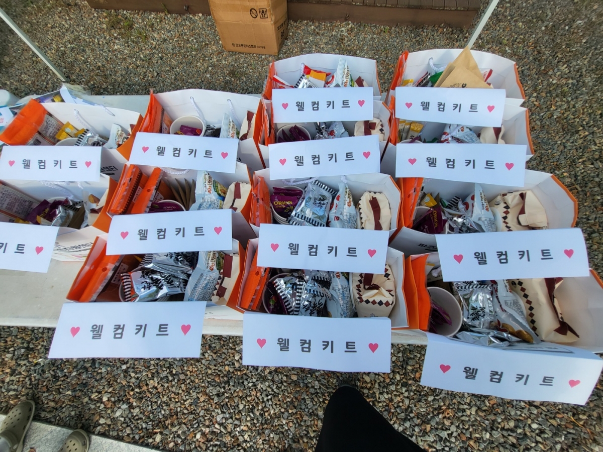 가족분들이 체크인하시면 (소소하지만) 센터 직원들이 정성들여 준비한 "웰컴키트"를 나눠 드리고, 캠핑 이용 안내 드렸습니다^^