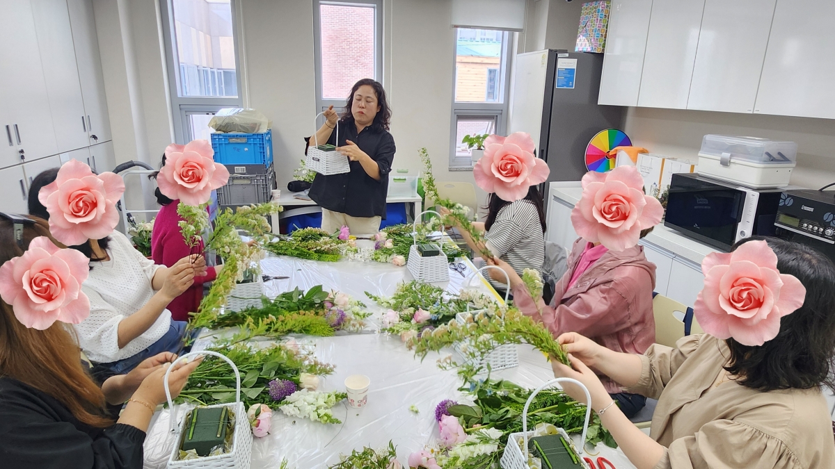 <힐링 동아리 꽃 바구니 만들기 활동 모습>