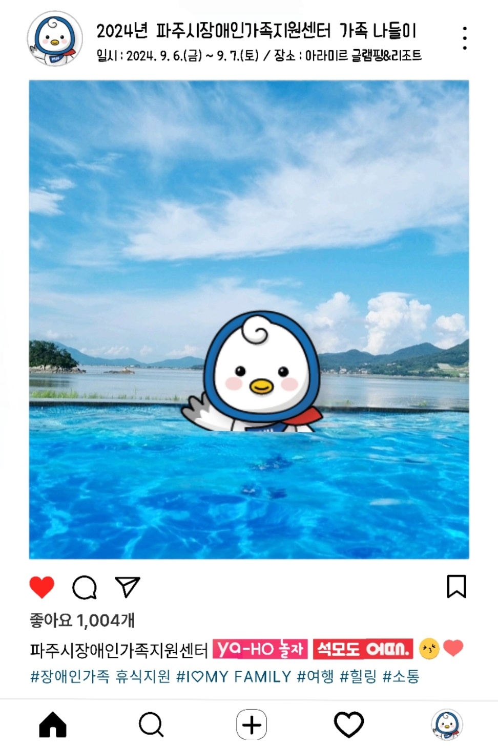 내년에도 장애인가족들의 휴식지원을 위해 더 나은 방향으로 계획하고 준비하도록 노력하겠습니다!
