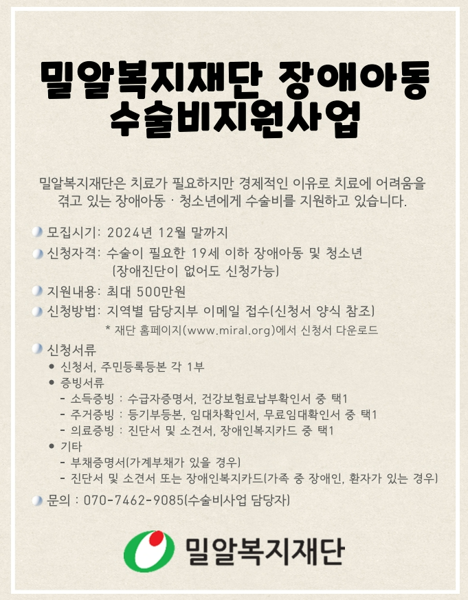 [홍보]밀알복지재단 장애아동 수술비지원사업