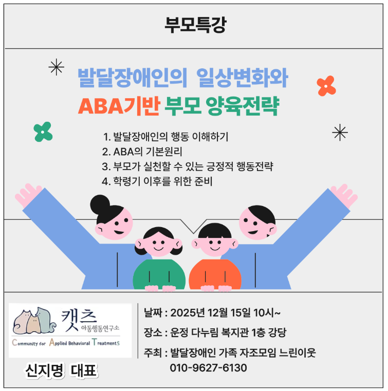 [홍보] 발달장애인의 일상변화와 ABA기반 부모 양육전략