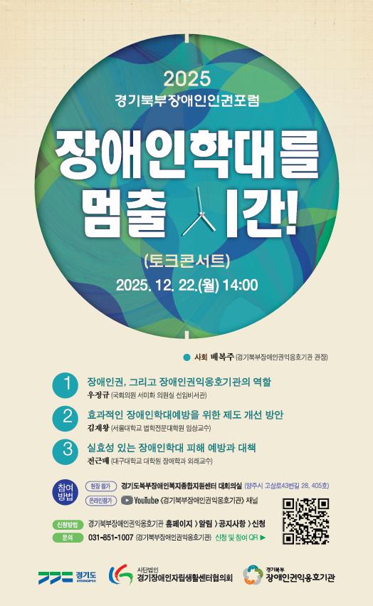 [홍보] 2025 경기북부장애인인권포럼, 장애인학대를 멈출 시간(토크 콘서트)